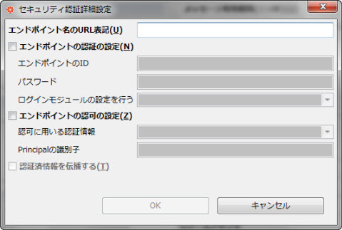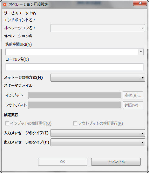 BCが提供するサービス名と名前空間を指定します。 エンドポイントロールが“コンシューマ”の場合、呼び出し先のサービス名と名前空間を指定します。 |