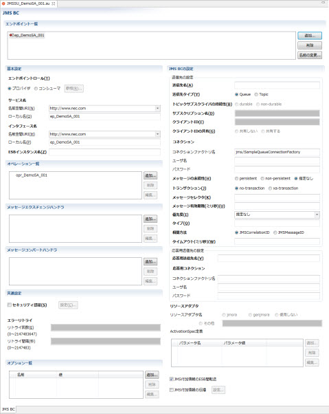 JMS BC のエンドポイントの設定が記述されます。 |