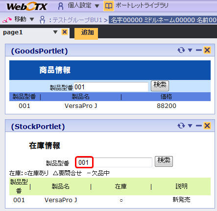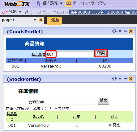 テキストボックスに入力した内容をほかのポートレットに受け渡す方法について確認することができます。