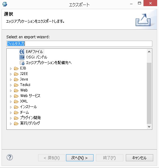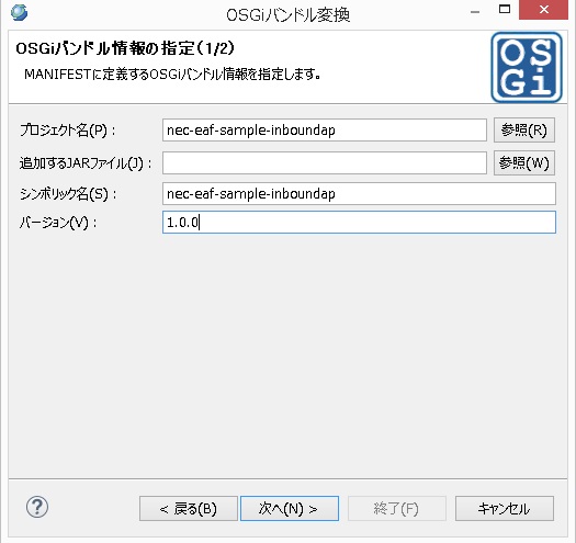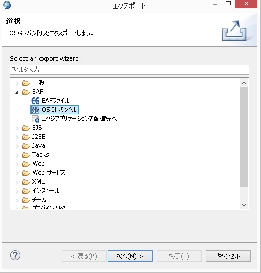 1. [ファイル]-[新規作成]-[プロジェクト]-[EAF]-[OSGiバンドルプロジェクト]を選択し「次へ」を押下