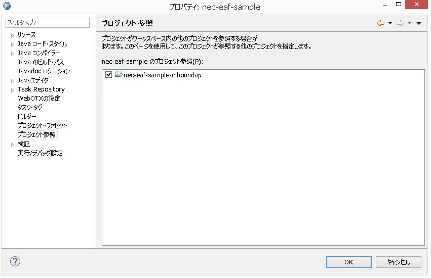 1. エッジアプリケーションプロジェクト名を右クリックし「プロパティ」から「プロジェクト参照」画面を開く