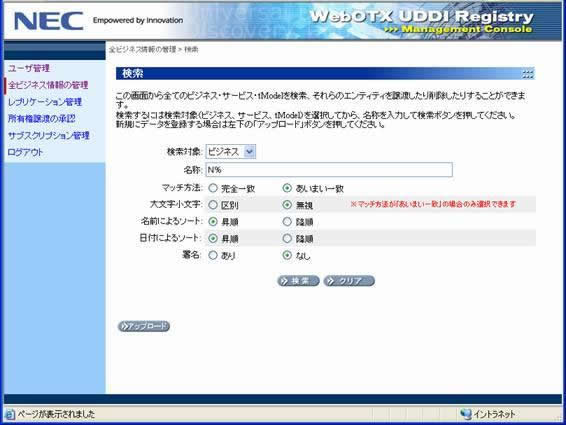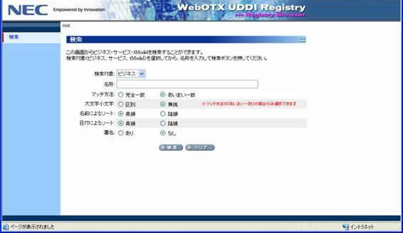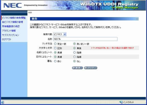 ビジネス情報検索では、 レジストリ内に保存されているデータの表示/検索を行えます。 また、検索結果のビジネス情報の詳細を表示することができます。