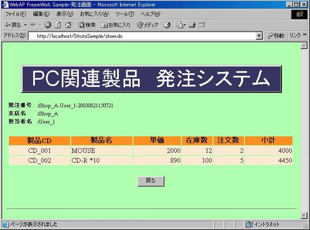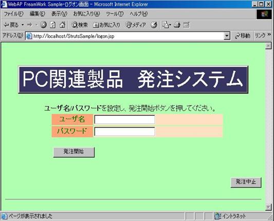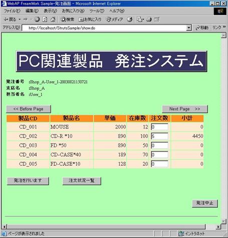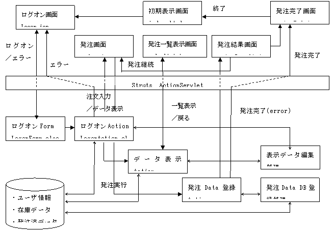 ・発注画面はログオンActionが作成した表示データを元に画面を表示します。発注画面より商品