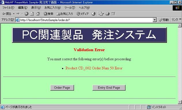 します。この場合発注完了画面はエラーメッセージを画面に表示します。