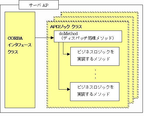 APロジッククラスのdoMethod メソッドでは、ビジネスロジックを実装する各メソッドを呼び出すためのディスパッチ処理を実装する必要があります。