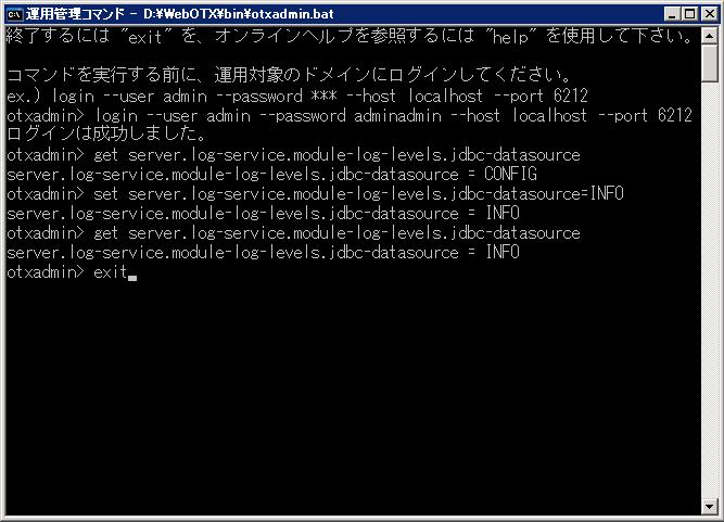 10. 再びgetコマンドにより設定したJDBCデータソースのログレベルを参照します。