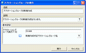具体例を挙げると、「myapg」という名前のアプリケーショングループを作成するには、次のようにします。
