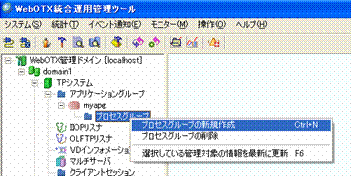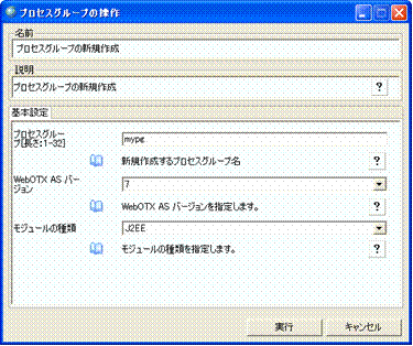 具体例を挙げると、「javaeepg」という名前の、「myapg」というアプリケーショングループに属するJava EE用のプロセスグループを作成するには、次のようにします。