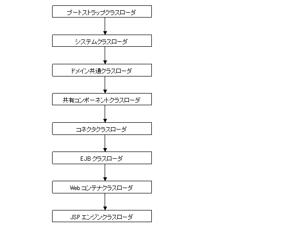 | Webコンテナクラスローダ | Java EEアプリケーションまたはWebモジュールに含まれるクラスをロードするクラスローダ)。 |