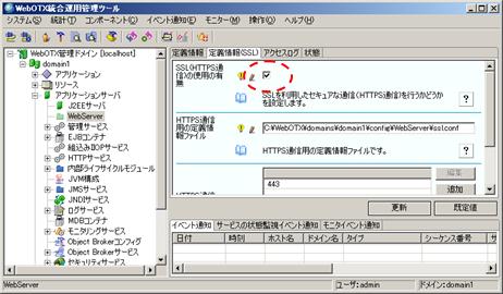 Webサーバの再起動 または WebOTX のドメインの再起動を行うことで、 変更した情報で Webサーバ が起動します。