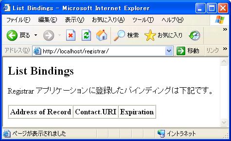 バインディング情報をリストするJSPです。 ServletContextからバインディング情報を取得して、表示します。 |