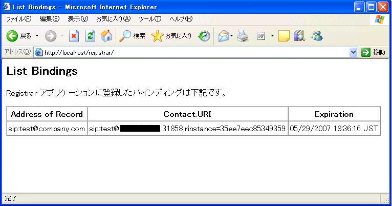 Registrarサンプルはレジストレーションサーバとして動作します。下記の機能を提供します。