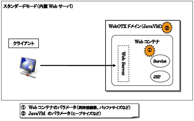 WebOTXで消費するメモリについてチューニングする方法について説明します。またディスクサイズを節約する方法について説明します。