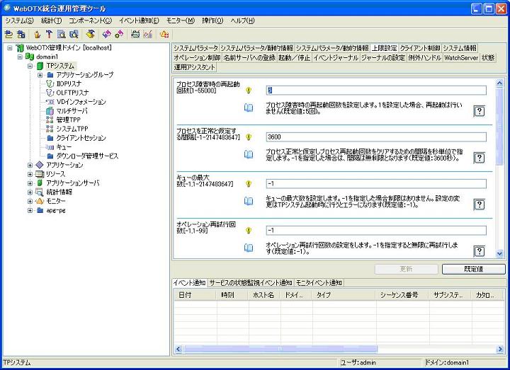 | サーババージョン | 管理ドメインが動作しているWebOTXのバージョン |