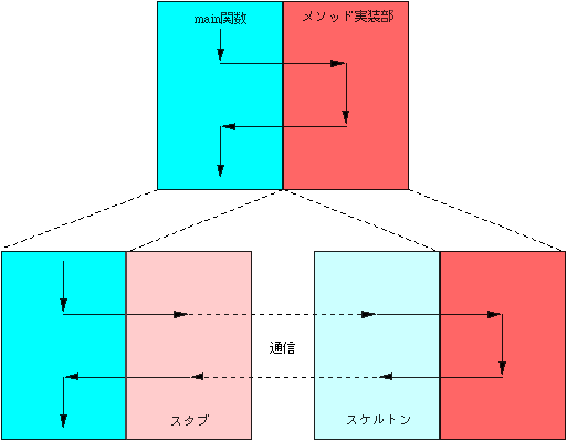 void func(CORBA::Environment&);サーバを終了させるメソッドの例を示します。動作の概要は以下のとおりです。