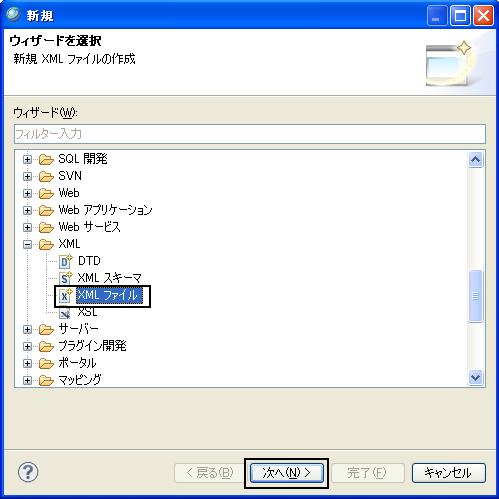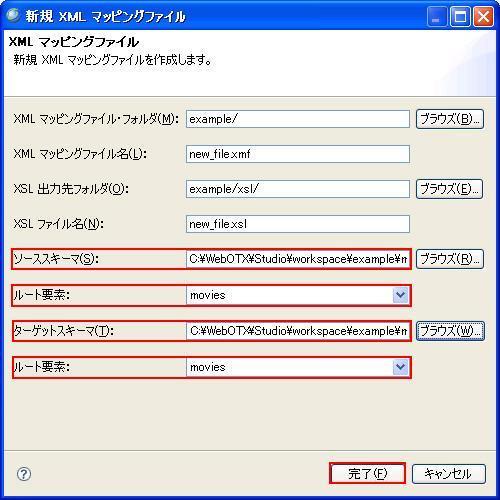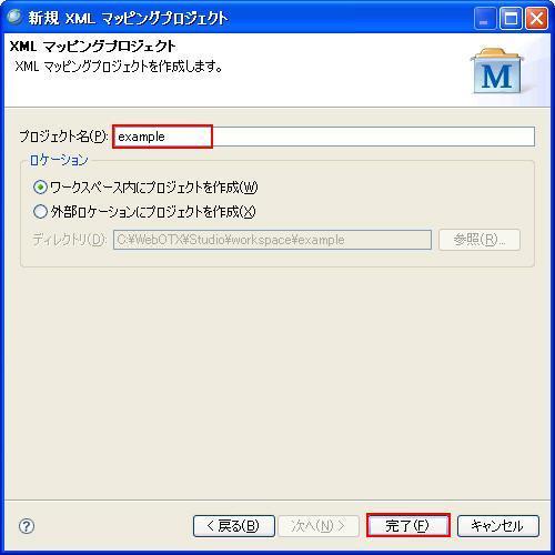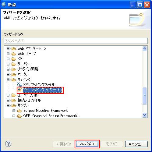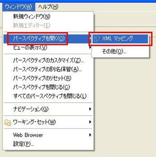パースペクティブを開く ダイアログボックスから XMLマッピング