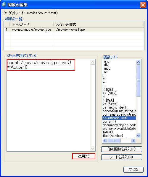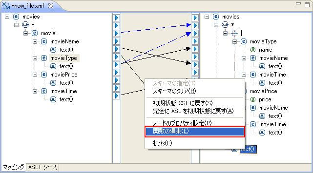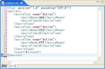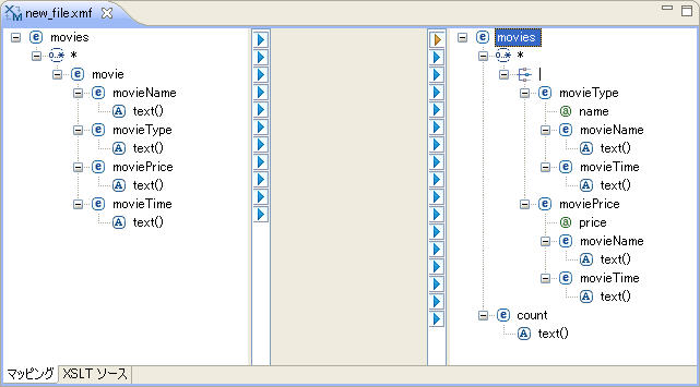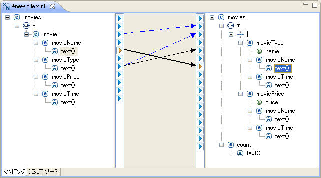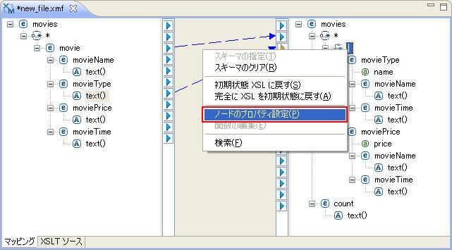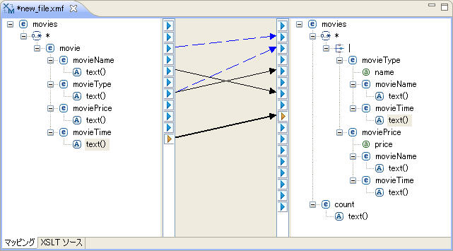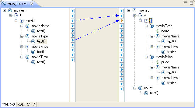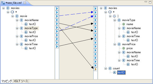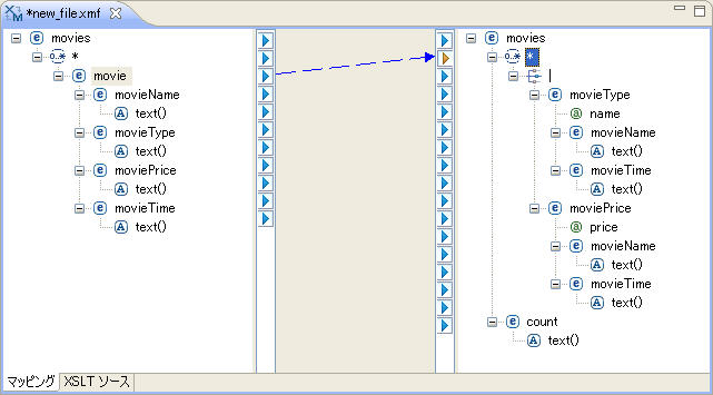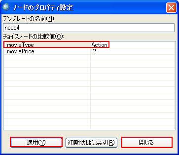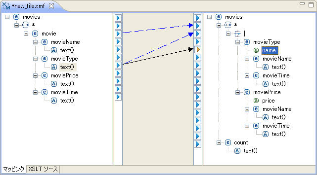 連接線の意味:movieTypeのため設置した比較値ActionをmovieTypeのname属性として出力します。