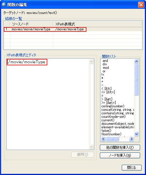 結線の意味:movieは繰り返し出現し、movieの出現回数だけ値がターゲットに出力されます。