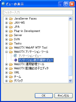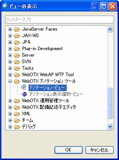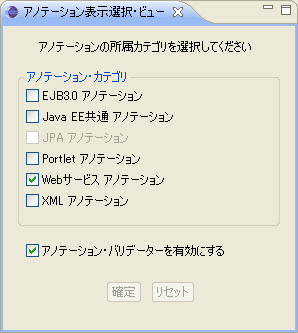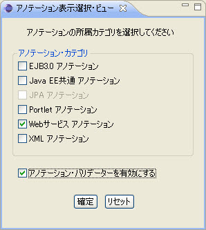 JAVAEE パースペクティブで、アノテーション・ビューとアノテーション表示選択・ビューをデフォルトで表示します。