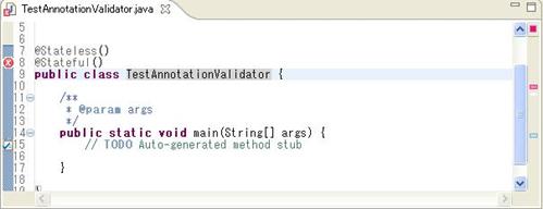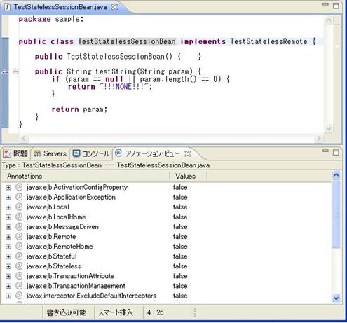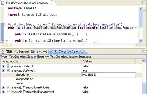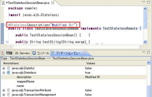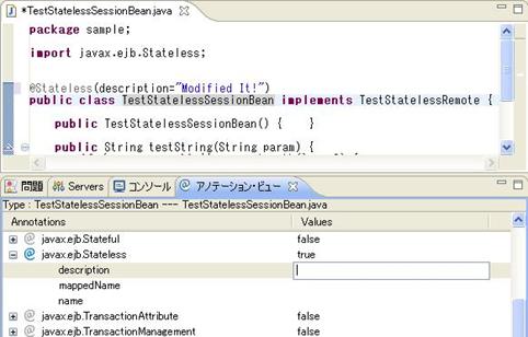 @TransactionManagement(value = TransactionManagementType.BEAN)なお、修正は、ソース内の記述を直接修正する以外に、アノテーション・ビューを用いた以下の手順でも可能です。