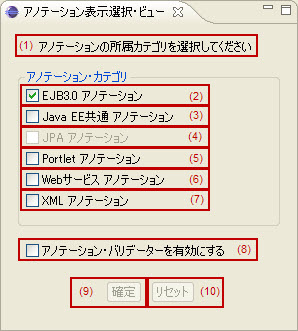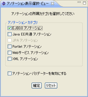 EJB3.0カテゴリに所属するアノテーションをアノテーション・ビューで表示するかどうかを指定します。 |