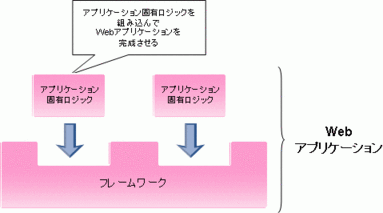 フレームワークは、Webアプリケーションを作成する上で必要となる共通的な機能や構造を提供します。 アプリケーションの共通的なメイン部分が提供されており、開発者はアプリケーション固有のロジックをフレームワークに組み込むことで、Webアプリケーションを作成することができます。