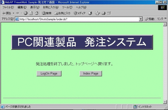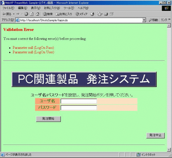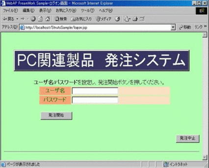2) 「発注開始」ボタンをクリックすると、ログオンAction(LogonAction.class)にリクエストを送信します。