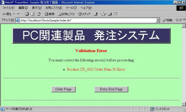 errorタグを使用しエラーメッセージを表示した場合の画面を次に示します。