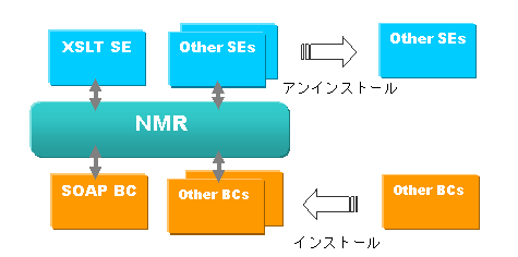 JBI仕様では、ESBにおけるサービスバスをNormalized Message Router(以下NMR)として定義しています。以下ではNMRの主要な働きについて説明します。