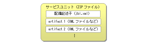 サービスユニット(Service Unit)はコンポーネントに関する設定情報をパッケージしたもので、コンポーネントに配備する最小の単位です。JBI環境はサービスユニット配備時には配備記述子だけ読み取り、SUが対象とするコンポーネントに引き渡します。