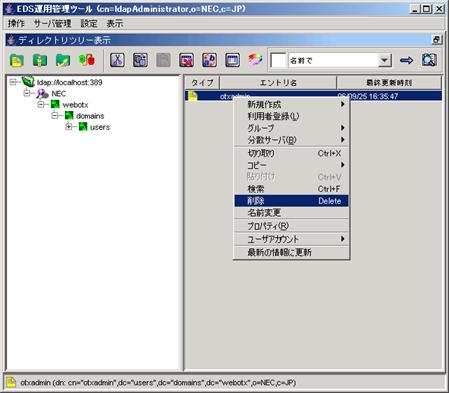 (*1)Enterprise Directory ServerとはNECが提供しているLDAPサーバです。WebOTXのCD5枚目(Linuxは4枚目)からインストールすることができます。利用する場合は、セットアップカード(EDS_SetupCard.pdf) を参照して、WebOTXがインストールされている環境にインストールしてください。セットアップカードはCD4枚目(Linuxは3枚目)に含まれています。