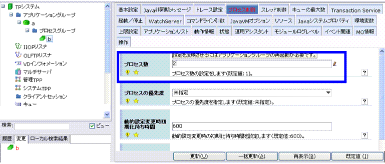 プロセスグループの「プロセス制御」タブページの「プロセス数」を「1」以上設定した場合、