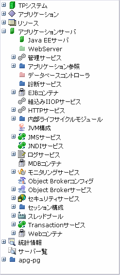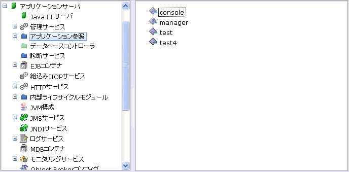 リンクバーで、親ノードのアプリケーションサーバ のリンクをクリックすると、メイン画面はアプリケーションサーバ の関連の画面に遷移します、また、リンクバーにアプリケーションサーバ までのノードを表示します。
