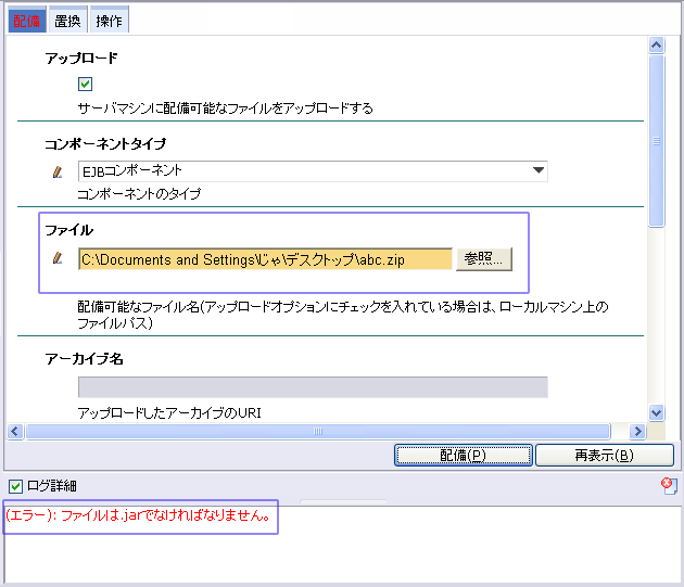 | 例外が発生しました: | 何らかの例外が発生しました。例外の内容をログビューで確認して、その内容に従い対処してください |