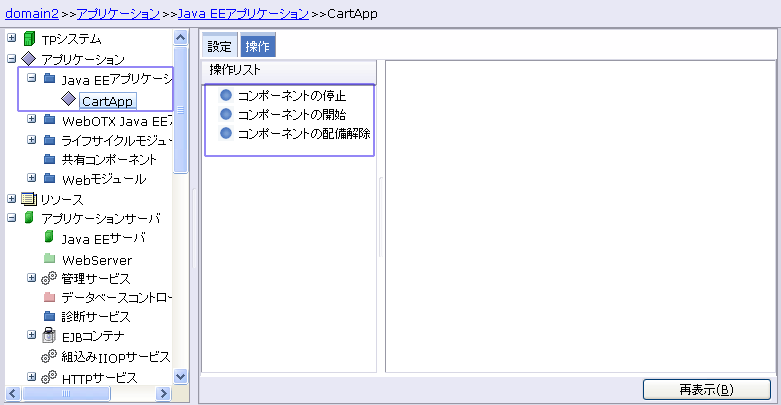 | 「リフレッシュ」 | 接続サーバからドメインの最新情報を取得し、コンソールの画面を更新します。[1.3.3.3. リフレッシュ] を参照してください。 |