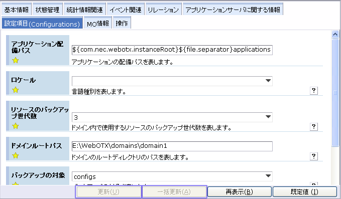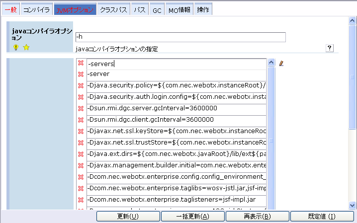 | 更新成功しました。 | 変更した属性のJMXサーバへの更新に成功しました。 |