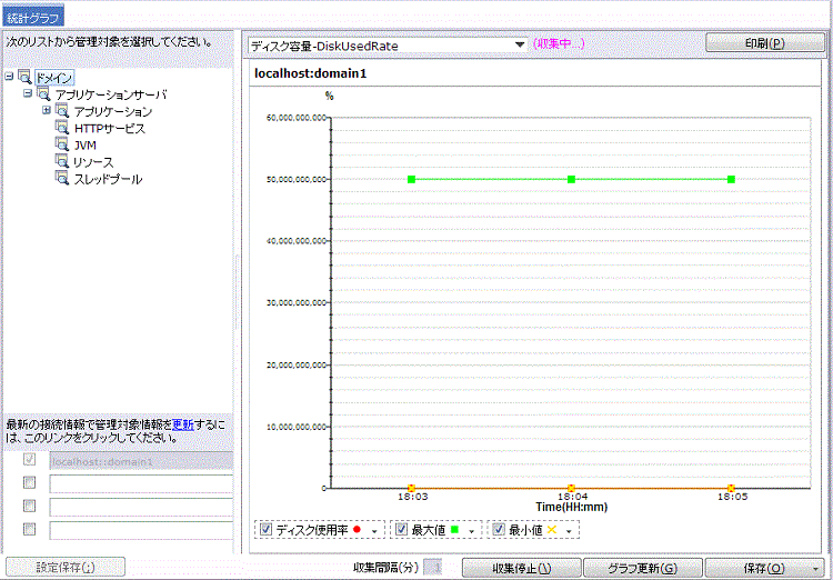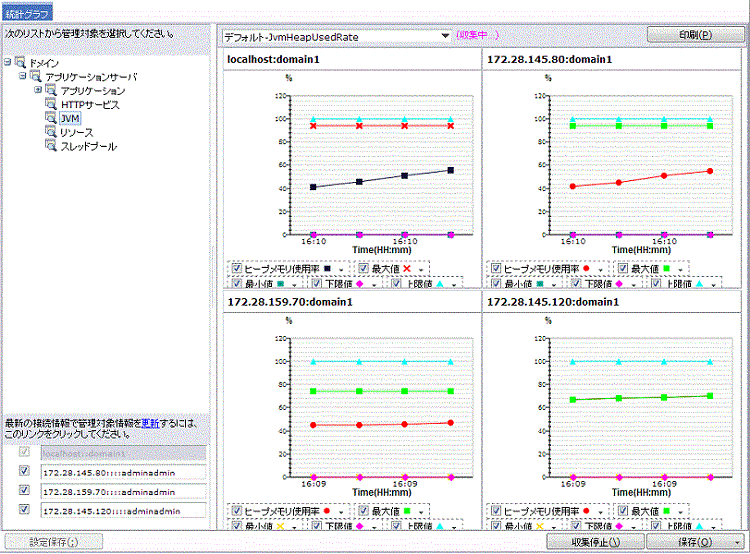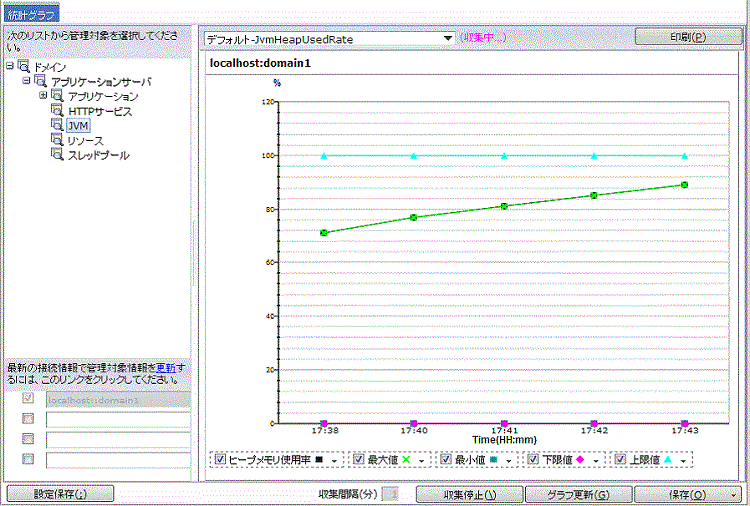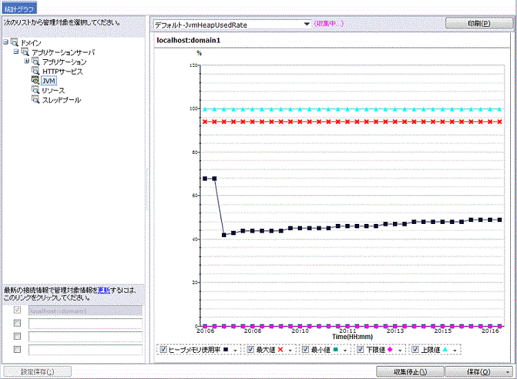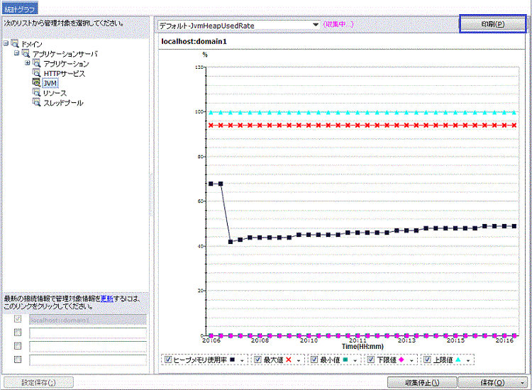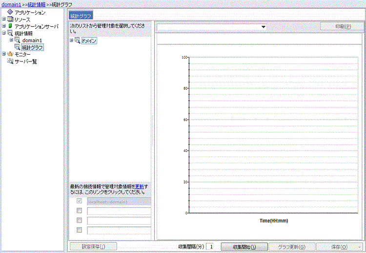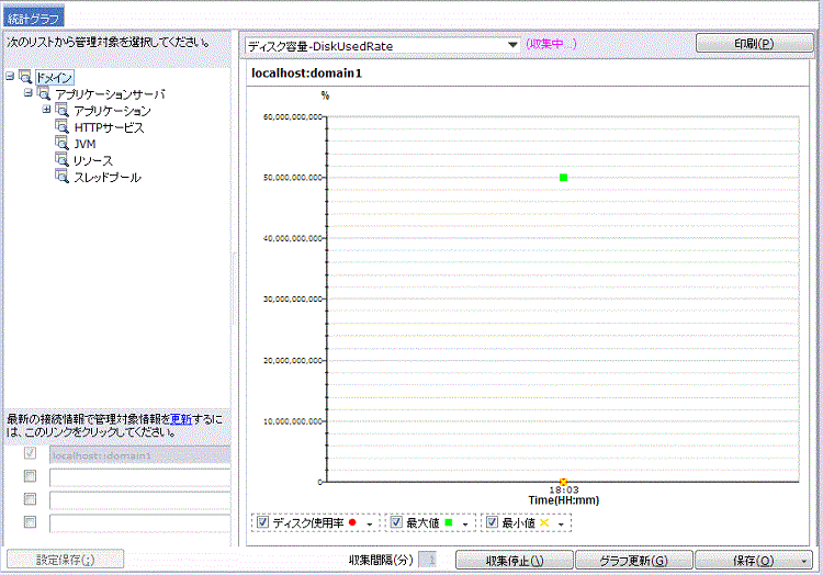| JMXサーバとの接続が取得できません。 | ドメインのJMXサーバに接続できませんので、統計データの更新ができませんでした。 |