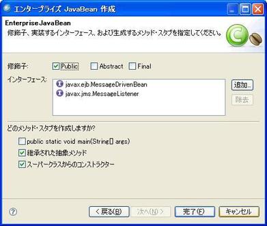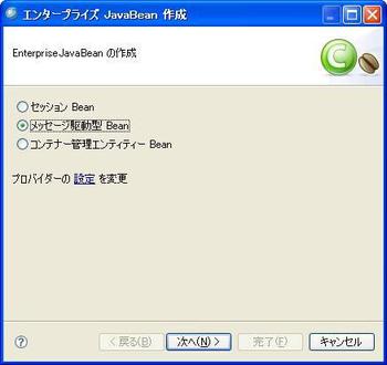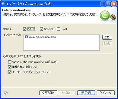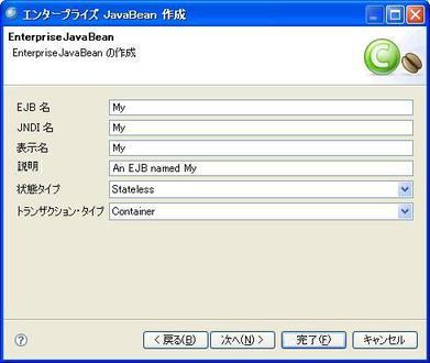 EJBのタイプを指定します。今回は、ステートレスセッションBeanであるため、Statelessを指定します。