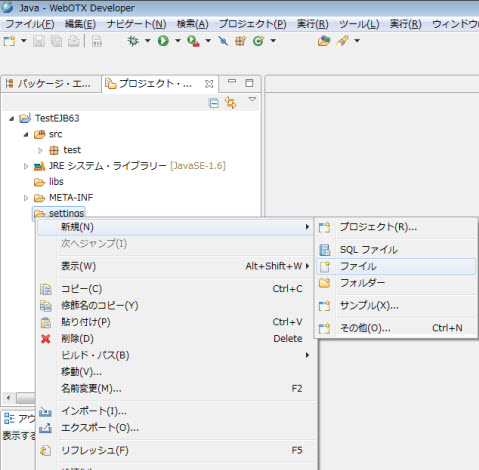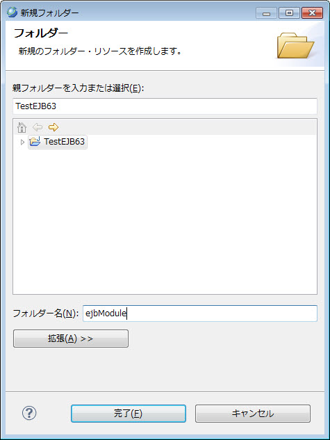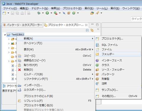 ejbModuleフォルダを作成します。J2EEパースペクティブに変更し、ソースフォルダの作成を選択します。