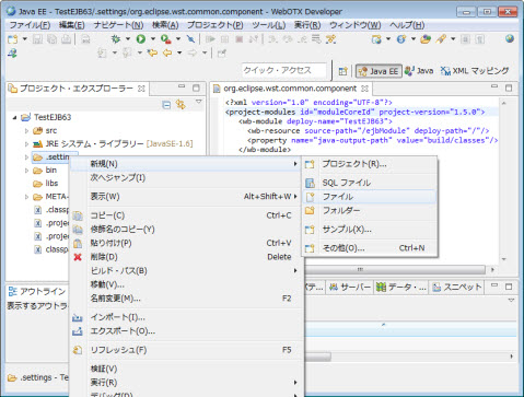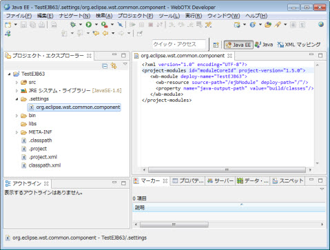 以下のように、その他のプロジェクトにあったTestEJB63プロジェクトは、EJBプロジェクト(WTPプロジェクト)に移動します。