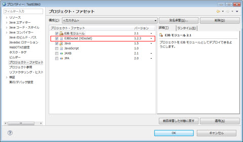 プロジェクトのプロパティを開き、プロジェクト・ファセットを選択します。EJBDoclet(XDoclet)をONにします。