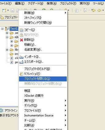 Eclipseの状態と同期を取るため、プロジェクトを一旦、閉じてから開き直します。