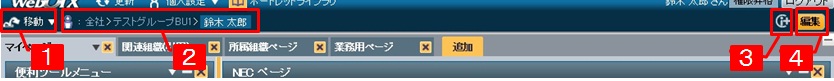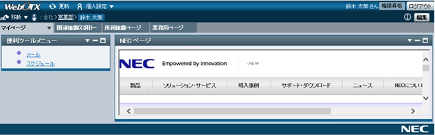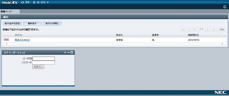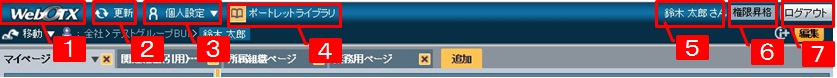 ポータルページエリアではポータルサイトに含まれる複数のポータルページの表示、およびポータルページの編集を行うための機能を提供します。