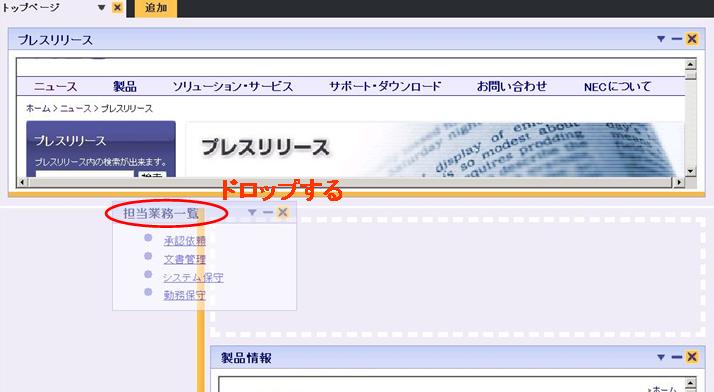 ここでは、共通サイトのポータルページに追加したポートレットについて説明します。