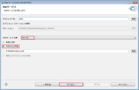指定したプロジェクトにウィザードで作成したWebサービスが既に存在している場合、Webサービスを生成することができません。