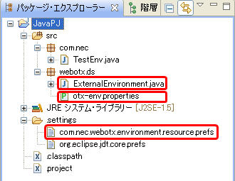 外部環境プロパティの設定が完了しているプロジェクトに外部環境プロパティの設定を再設定することはできません。プロパティ・ファイル名等を変更したい場合は、com.nec.webotx.environment.resource.prefsファイルを修正してください。
