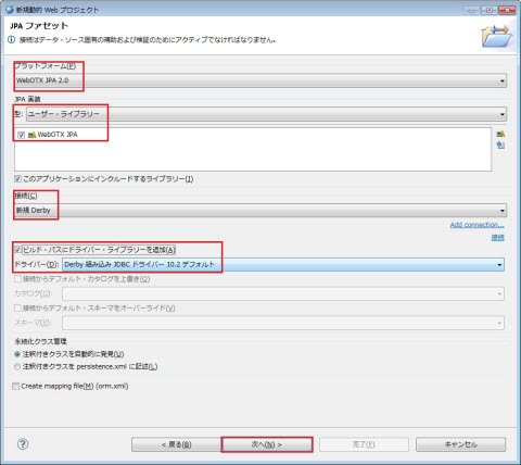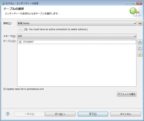 | 注釈つきクラスをpersistence.xml に記述 | 選択 |