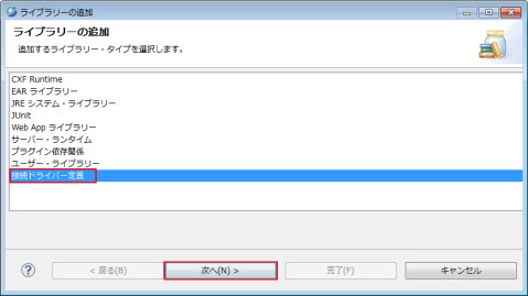 | ビルド・パスにドライバー・ライブラリーを追加 | 非選択 |