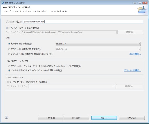 JpaRestfulSampleClientというクラスを作成し、その内容は以下ようにします。