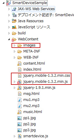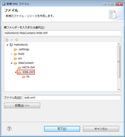 | WEB-INF/web.xml | Webアプリケーションのデプロイメント記述子です。Servlet3.0ではデフォルトで生成されません。 |